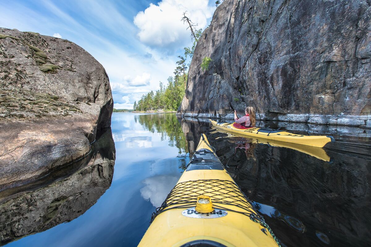 赛马独木舟(Saimaa Canoeing)路线是芬兰最具可持续性的旅行方式之一。塞马湖Saimaa是芬兰第一大、欧洲第四大的湖泊。从地图上看来,塞马湖像是由爆炸产生,呈网状分散开来。迷宫的塞马湖成了最适合皮划艇的地方。只需拿起桨,踏上一叶舟,乘着耀阳与水波,就能徜徉在宁静的山湖当中。芬兰多条独木舟路线的开发成果在2023年旅游展的可持续竞赛单元中脱颖而出,这些绝美的游览路线还为游客考虑到住宿需求,如指定的过夜地点、私人露营地和小木屋等。