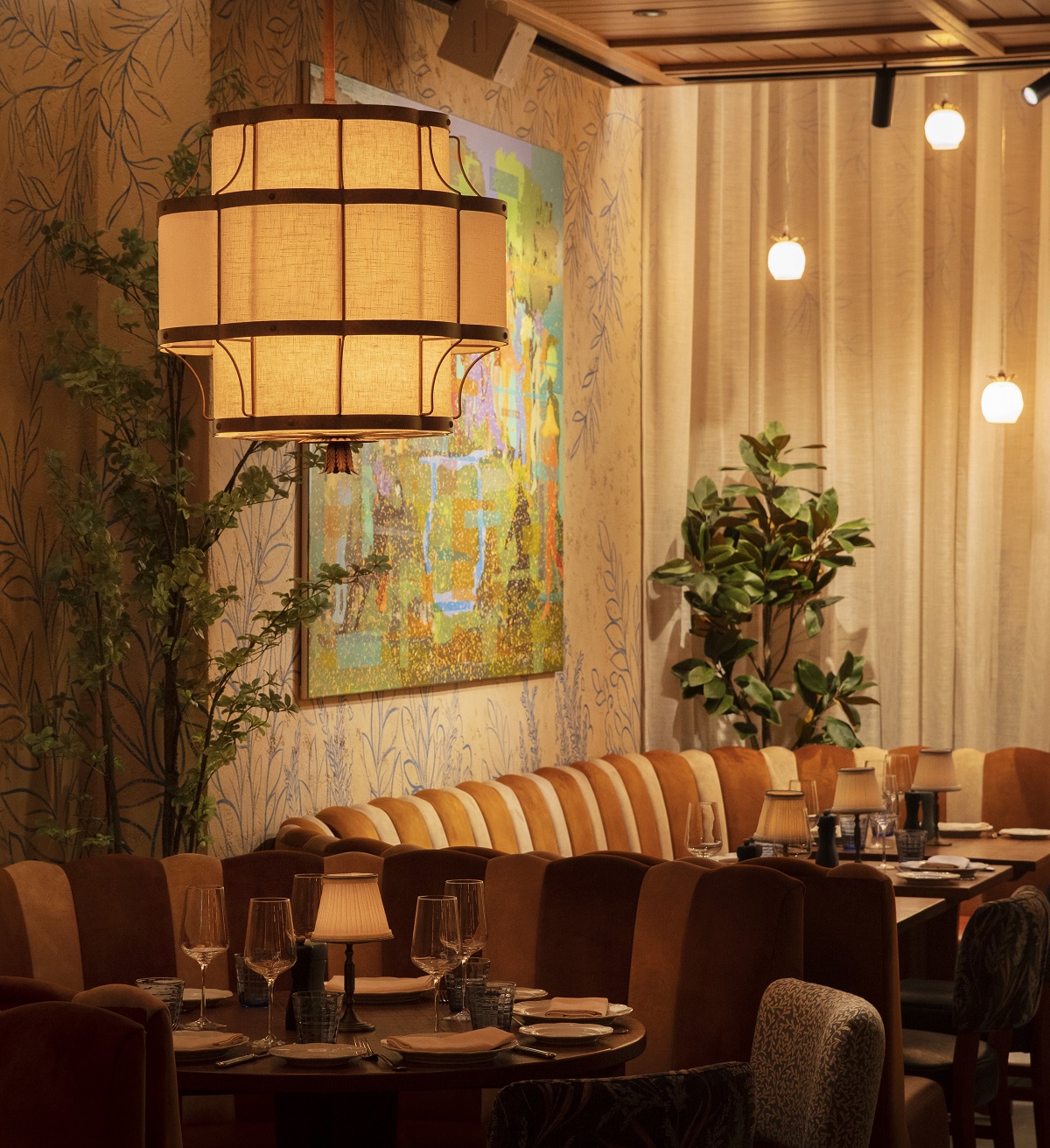 酒店的邻里酒吧The BoTree Bar是一个充满活力的空间,天花板上的灯饰将整个空间照亮。宾客可以尽情享用各种饮品,坐在茶色大理石吧台前,欣赏金色墙壁上的瓶瓶罐罐。