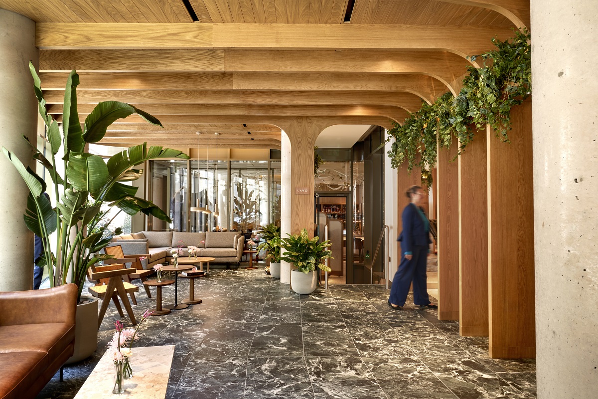 BoTree 酒店的原址经过改造后,成为一家全新的豪华酒店。酒店的设计和材质尊重玛丽波恩巷和韦尔贝克街现有的建筑特色,并对正面和公共区域进行了积极的改造。内部采用大胆的色彩,辅以天然材料和精致的灯光,营造出舒适的空间,散发出优雅的气息,吸引人们前来聚会和社交。一进门,宾客就会被迎进一个诱人的空间,这里摆放着鲜花和茂盛的植物,灵感来自玛丽伯恩巷的活力。大堂犹如一座现代温室,为宾客营造了一个温馨的居住和交流环境。