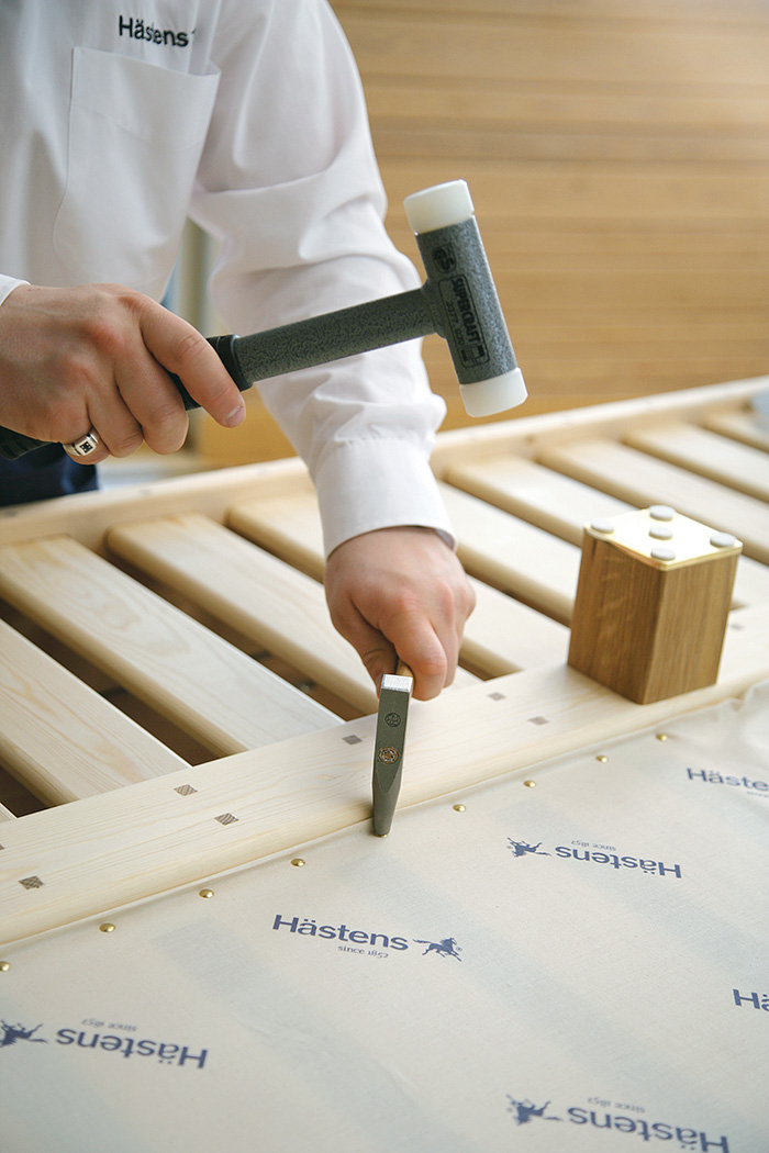 海丝腾对床具的品质要求几近苛刻,每一款海丝腾床都需要在瑞典雪平(Köping)的工厂里花费 100 小时以上手工完成。