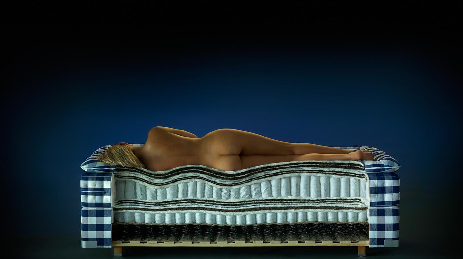 每一张海丝腾床都会根据使用者的身体曲线量身定制。上面这张实拍照片中,海丝腾真实锯开了一张睡床,可以看到独立弹簧根据人体的曲线进行不同程度的承托,而人全身放松地睡在上面时,脊椎被完美地支撑,身体在不受挤压的状态下,更有利于放松。