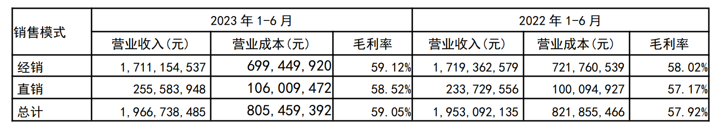 公司在半年报中说明,经销模式是张裕的主要销售模式,主要销售渠道为线下销售,即通过境内外约 4000 家经销商,将公司产品配送至销售终端。
