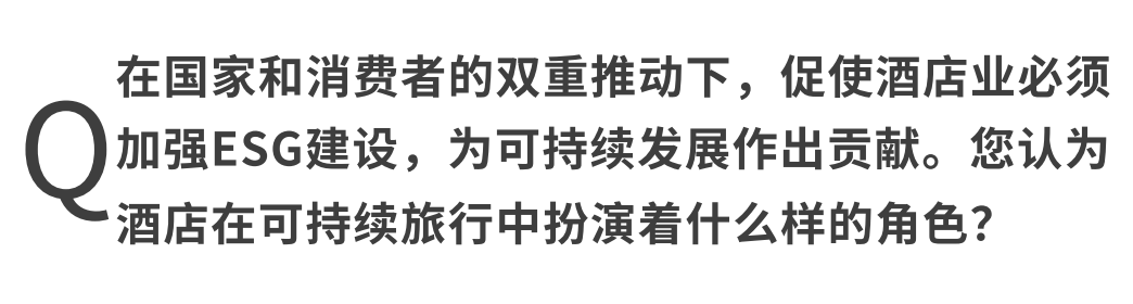 王永刚:我认为国内酒店业的竞争太激烈了,酒店业的整体盈利水平并不高,“仓廪实而知礼节”,让苦苦挣扎于盈亏线下的酒店们加大投入ESG确实是一大难点。酒店业是我所遇到的标准化程度最高的产业类型了,没有之一,可以说任何一个“酒店品牌”都有自己详细规范的SOP(标准化流程),所以形成一份有效的行业标准并不困难,而且一定会制作的相当出色与具有可操作性。参照“碳交易”制度,如果ESG的非财务价值可以对其进行“财务量化”,并给予相应的优惠政策,相信这不是一座不能逾越的大山。