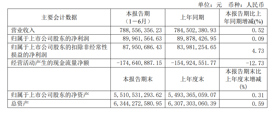 报告期内,古越龙山实现营业收入约7.89亿元,同比增长0.52%;归属于上市公司股东的净利润约8996.16万元,同比增长0.09%。