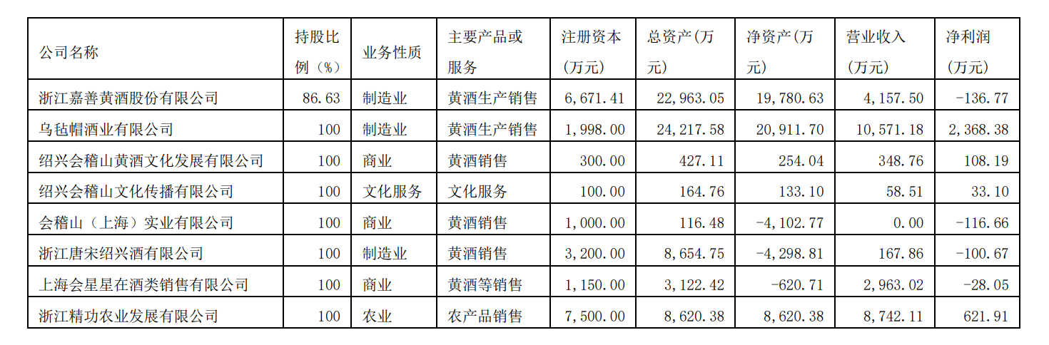 从半年报可以看出,从事黄酒生产与销售的浙江嘉善黄酒股份有限公司、会稽山(上海)实业有限公司等四家公司均出现了净利润下跌。反而是从事文化服务的绍兴会稽山文化传播有限公司和从事农产品销售的浙江精功农业发展有限公司实现了净利润增长。
