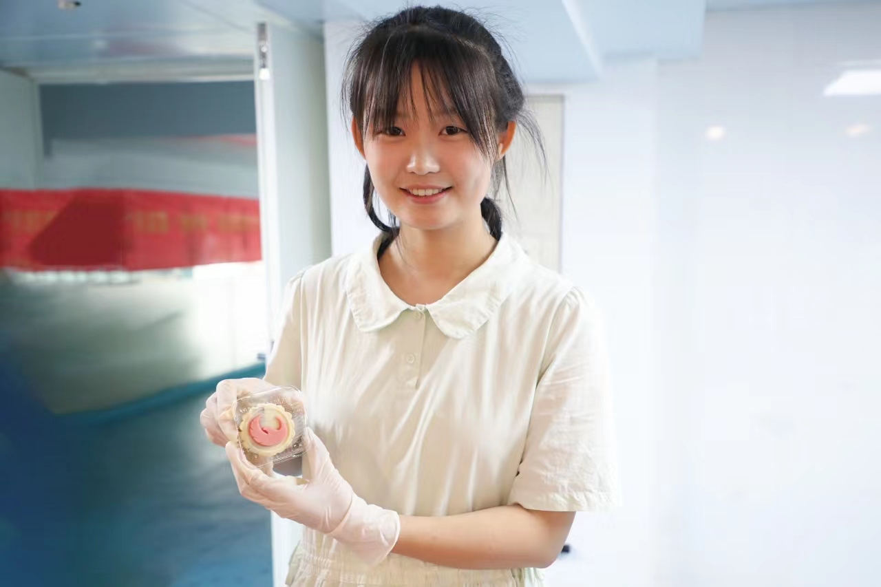 “三五夜中新月色,二千里外故人心”“此生此夜不长好,明月明年何处看”……在飞花令活动展架前,同学们以诗会友,对局助兴,玩得不亦乐乎;在灯谜环节中,大家相互合作,共同破题;而在投壶活动前,则更是排起了长队,各个争先恐后、跃跃欲试。 宁波财经学院的中秋活动不仅创意满满,还有效融通了学校办学特色,充满了育人元素。“我对学校的建筑进行了国风化再创作,反复优化修改了细节展示,主打就是一个国潮风。”该校艺术设计学院大三学生章子成设计了月饼的包装和饼面纹样。“借助UG建模、3D打印,完美地将艺术设计学院同学的二维设计图,变成了三维实体。”该校数字技术与工程学院学生媒体技术专业的周文豪自豪地说:“用我们自己的劳动成果制作出的月饼,特别甜!”
