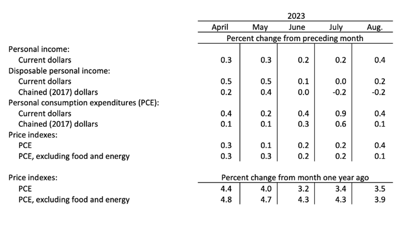 从同比来看,8月份整体PCE价格指数同比上涨3.5%,高于前值的3.4%;剔除食品和能源后,核心PCE指数同比上涨3.9%,低于前值的4.3%。