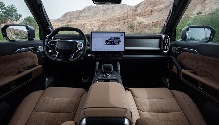 越野性能是此车亮点之一。400使用传统非解耦式四驱系统,配合带机械锁的分动箱和前后机械差速锁,确保了快速、优化的扭矩分配。车身结构方面,采用了非承载式设计,其中高达76.6%使用了高强度钢材,使车身能承受高压,并提升了抗扭转和抗弯曲性能。