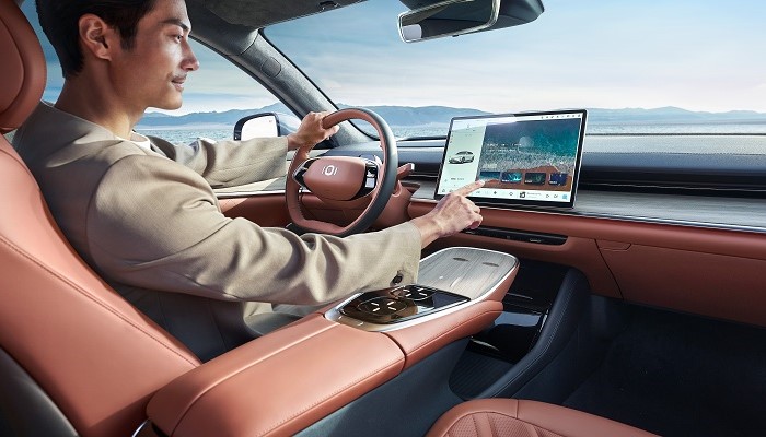 内部设计简洁,搭载了一个大型悬浮中控屏,智能芯片为高通8155,支持L2级智能辅助驾驶系统,540°全景影像的加入则提高了主动安全性。