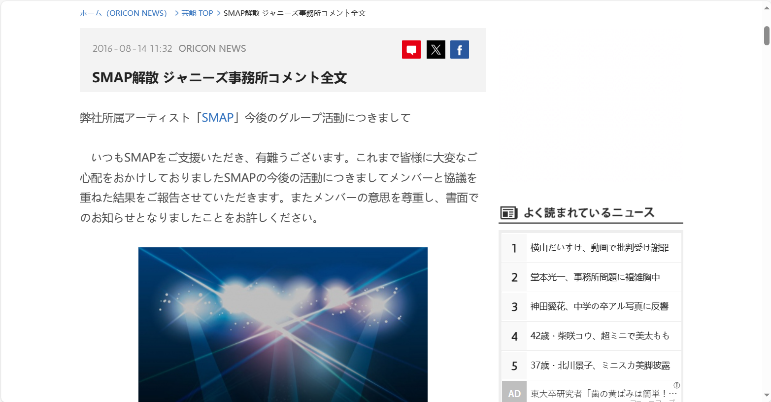 随着喜多川退居幕后,关于杰尼斯下一任继承人的内部斗争愈演愈烈。据ORICON NEWS报道,2015年,一手培养出SMAP的经纪人饭岛三智退出杰尼斯事务所,这也导致了2016年杰尼斯国民天团SMAP的解散,除木村拓哉外,其余四位成员均离开了杰尼斯。而SMAP成员已实现影、视、综多栖全方位登顶,每场演唱会入场人数累计达千万次,多次拿下第一,团体解散对杰尼斯造成重大打击,当日日本电视新闻甚至把“SMAP一解散恐将让日本经济亏损636亿”直接打上了荧屏中央。