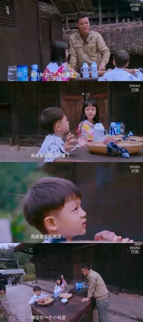 亮仔说想吃红薯和鸡蛋,姐姐就把自己的让给他~