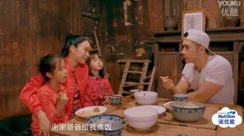 吃了爸爸给做的饭之后,她就跟孩子们说,要谢谢爸爸给我们煮饭~