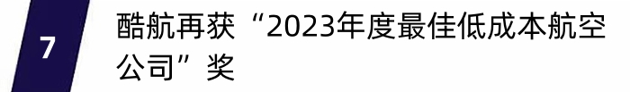 近日,作为新加坡航空集团 (SIA Group) 旗下的低成本航空公司,酷航在TTG旅游大奖和亚洲版《旅讯》读者甄选奖中被评为“最佳低成本航空公司”。酷航首席商务官陈仁山 (Calvin Chan) 表示: “我们很荣幸再次获得荣誉,感谢我们尊贵的旅客和业界伙伴多年以来的大力支持。这些荣誉体现了整个酷航大家庭坚定不移的奉献精神、始终昂扬的激情和持之以恒地辛勤工作。我们一如既往地通过旅行将旅客和多元文化相连接,致力于在行业内重新定义低成本航空的体验。”今年6月份,酷航荣膺Skytrax全球航空公司奖2023 “全球最佳长途低成本航空公司”殊荣。