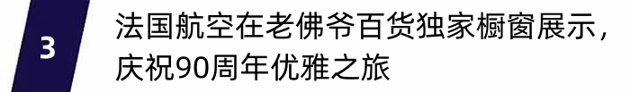 9月27日,法国航空(下简称:法航)在巴黎奥斯曼大街老佛爷百货揭幕12个橱窗展示,正式开启庆祝90年优雅之旅。作为周年庆的一部分,从9月28日至10月10日,对外展示五套礼服系列,由巴黎歌剧院芭蕾舞团服装设计总监Xavier Ronze先生设计。这些原创礼服从公司历史上的标志性物件以及当代作品中汲取创作灵感,成功地将历史与现代联系起来,诠释了法航以及法国在其专业领域所能提供的最佳一面。在巴黎市中心,法航以一种创新、免费、贴近大众的方式向所有法国和国际游客展示其悠久历史。为了确保本次展出能够触及更多的受众,法航创作了一个全新的沉浸式网站,提供法语和英文两种语言,使访客能够探索并了解更多橱窗秀的主题。