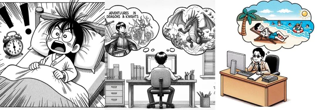 ——哦,有一点我说错了,上面这几幅画并不是由那些漫画家本人画出来的。创作它们的是内置了DALL-E 3的ChatGPT Plus。