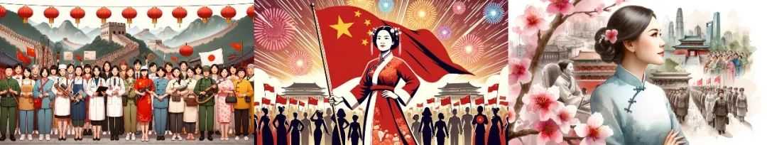 请创作一幅中国庆祝三·八国际劳动妇女节的海报。主题是:“巾帼筑梦心向党,强国复兴勇担当”,但不需要在海报中出现文字。