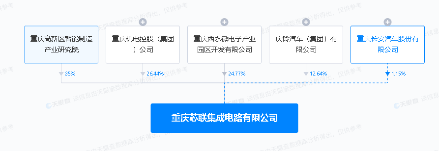 天眼查App显示,近日,重庆芯联集成电路有限公司成立,法定代表人为杨永晖,注册资本87亿元,经营范围包括集成电路设计、集成电路制造、集成电路芯片及产品制造、集成电路芯片设计及服务、半导体器件专用设备制造等。股东信息显示,该公司由重庆高新区智能制造产业研究院、重庆机电控股(集团)公司、庆铃汽车(集团)有限公司、长安汽车等共同持股。据悉,重庆芯联集成电路有限公司是重庆市国资相关单位联合大型汽车整车企业投资的先进车规级12英寸大型集成电路制造项目。