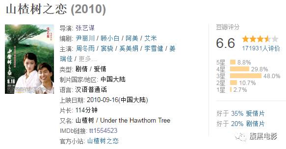 豆瓣评分6.6,好于35%爱情片,好于20%剧情片。