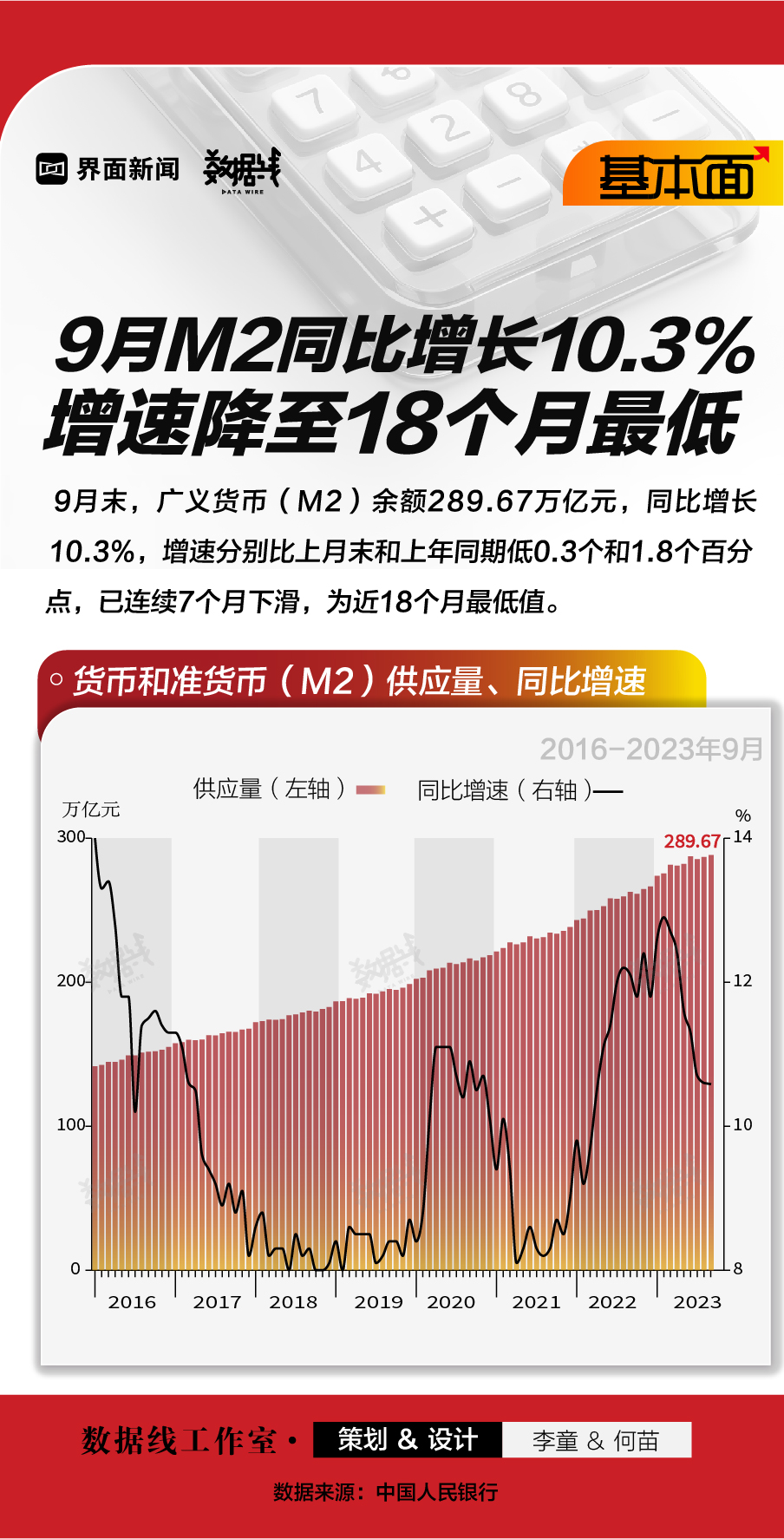 基本面 | 9月M2同比增长10.3%,增速降至18个月最低