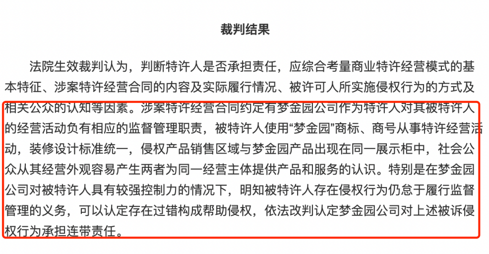 由此可见,梦金园对于加盟商的监督管理不足,间接造成了侵权案件的发生。