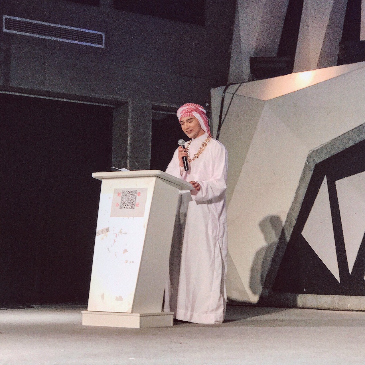 这场秀是由艳光四射性冷淡作为第一个脱口秀艺术家出场的,艳光的主题是偏见,穿了一身中东长袍。
