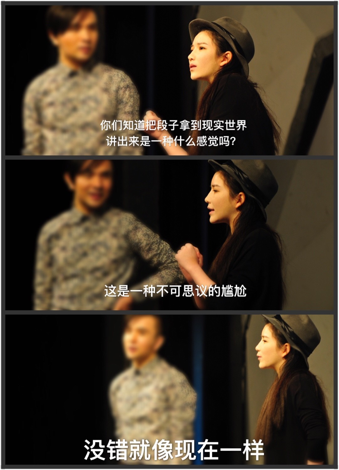 宋方金和汪海林老师的上场让黑屋君猝不及防,两位老江湖一张口就逗笑了现场三百多个人,汪海林老师一开场就笑称自己是最生气的编剧,要“消除理解,传播偏见。”小鲜肉又被狠狠黑了一把并且痛斥电视剧收视造假等问题。提及收视造假现象,调侃小鲜肉,“倒模演员比本人演得好。”说“影视行业现在是想活也活不下去,想死也死不了。”但是碍于性冷淡同学的“去偏见,好好看世界“的主题深入人心,黑无可黑的宋方金老师只能一言不合就卖书还从自黑下手,把身边的朋友和不差钱老板黎宛冰一起黑了一把,台下观众纷纷表示,这个票买的很值啊。