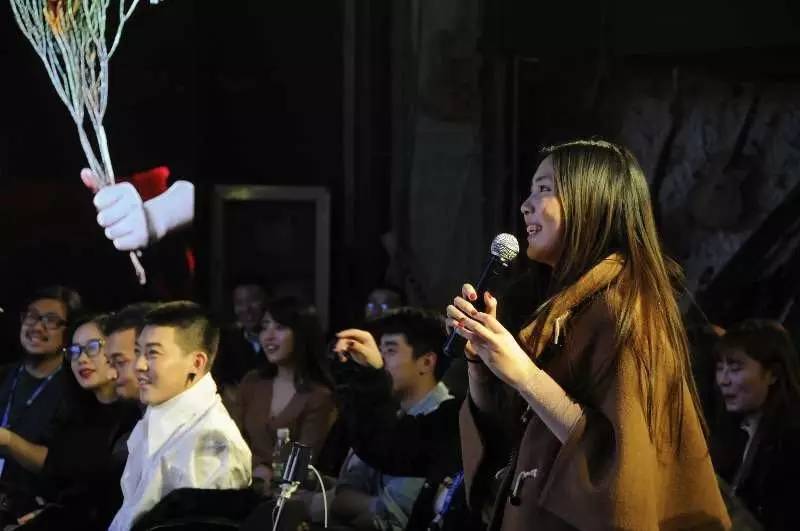 大家再畅饮完酒水之后等待压轴的郭上的童鞋。郭上接起了搞砸秀场,搞垮创业公司的最后一棒,在现场表演补妆、发自拍和用八国语言对话分享自己的减肥经验“早饭喝水,午饭喝水,晚饭喝一点点水,靠世人对我的嫉妒来维持生命。千万不要做运动,运动有害健康。“