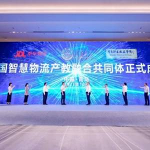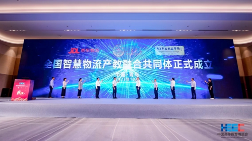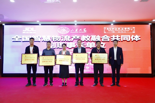 10月13日下午,在第60届中国高等教育博览会举办期间,全国智慧物流产教融合共同体揭牌仪式暨成立大会顺利行。共同体由京东物流、山东大学、青岛职业技术学院牵头成立。教育部职业教育与成人教育司副司长林宇,中国高等教育学会职业技术教育分会理事长周建松,山东省教育厅二级巡视员孙祖兴,山东省教育厅职教处处长王志刚,青岛市教育局副局长宋丽,中国教育发展战略学会产教融合专业委员会副理事长、秘书长李桂云,山东大学管理学院党委副书记周琳,京东物流科技副总裁范广辉,青岛职业技术学院党委书记王金生,党委副书记、院长秦青松等领导出席活动,来自全国21个省区市72余家单位的106名代表参加会议。成立大会由青岛职业技术学院副院长刘宏主持。