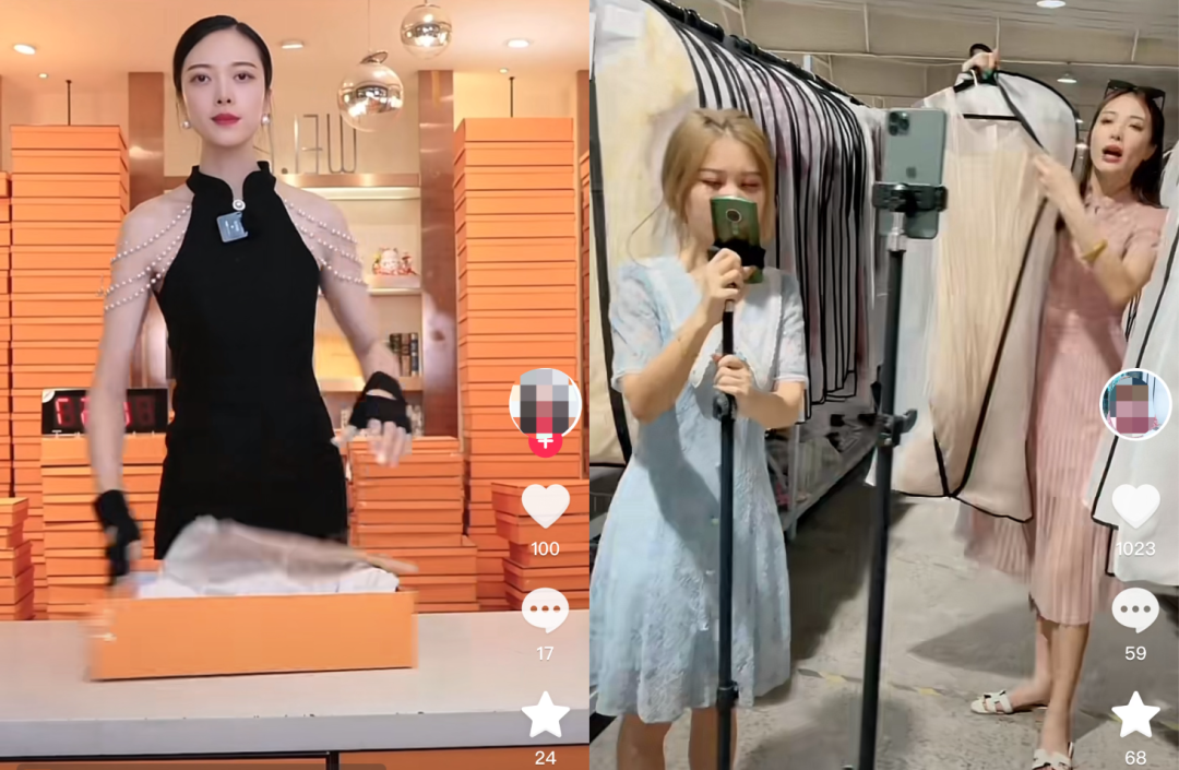 「定焦」发现,在抖音,“四季青老板娘菲菲”“杭州老板娘小微”“YICHEN服饰”“杭州李梨梨女装”等女装账号,“小杨哥拆百货”“小安其清货”等百货账号,同样用快速过品的玩法做直播带货,主播穿搭气质和直播间布景也十分类似,有些账号比郑香香更早使用这种方式进行带货,但是郑香香是最出圈的一个。