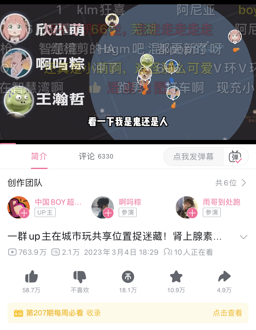 这一系列视频完成了躲猫猫玩法在B站社区内自上而下的传播。头部UP主制作的PUGC内容为B站用户提供了共同话题。而基于高粘性、高互动的社区生态,优质的内容容易在B站形成讨论、不断扩大影响力。