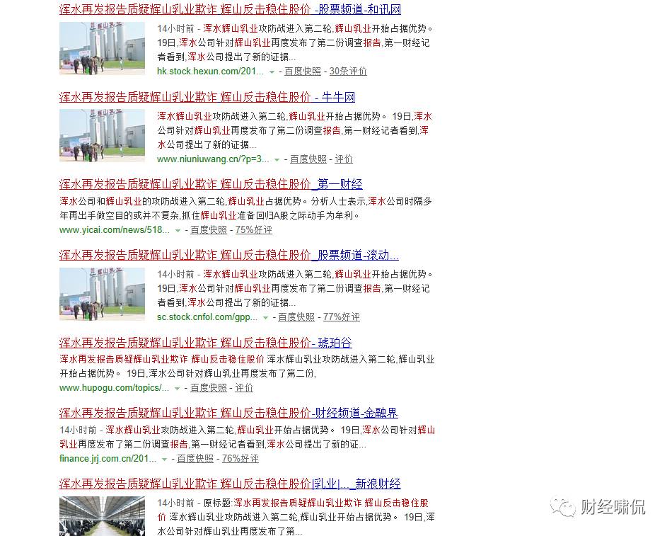 乳业高级研究员宋亮等业内人士向《财经啸侃》特约、独家撰稿人五谷君表示,股票价格不跌反涨,意味着在做空与反做空之战中,辉山乳业已经逐渐占据上风,但也要随时做好准备,不排除浑水后续还有新动作。媒体也纷纷发文称“辉山乳业反击稳住股价”!