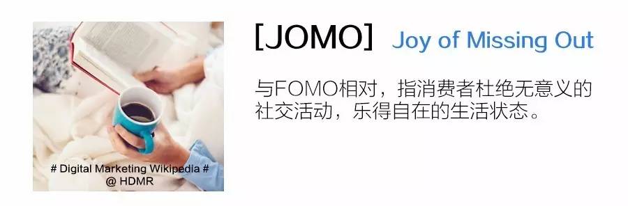 那你是否听说过JOMO?Joy of Missing Out (享受错过)。 它在2016年成为柯林斯词典评选出的年度十大热词之一。