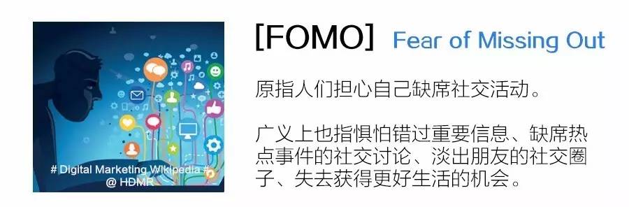 你或许听说过FOMO, Fear of Missing Out(惧怕错过),它在2013年正式加入牛津英文词典。