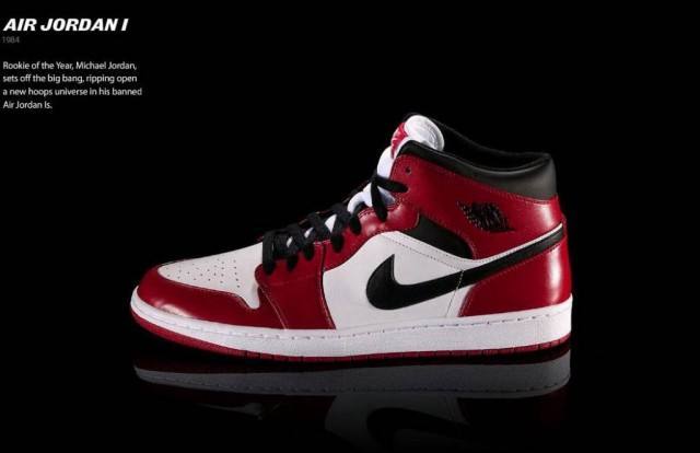 3. 第五位:Air Jordan I 1985年,耐克公司为乔丹推出第一代篮球鞋——Air Jordan I ,它从诞生起就伴随着非议。一开始,公牛教练不允许乔丹穿这双鞋出战,理由是与球队的队服颜色不协调。此后,联盟更是以球鞋配色太鲜艳为由对乔丹开出罚单,第一场1000美元,第二场2000美元,直至最后的每场罚款5000美元。不过,耐克坚持支付罚金,鼓励乔丹继续穿着上场。结果,NBA的这条禁令成为一条最好的“广告”,越来越多人关注乔丹和他的那双鞋,Air Jordan I 由此被疯狂抢购一空。