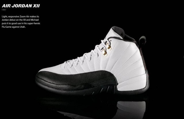 4. 第四位:Air Jordan XII 迈克尔·乔丹第二个三连冠期间的一双冠军之靴,第一双搭载Zoom Air科技的Air Jordan,第一双在中国大陆正式发售的Air Jordan球鞋——这些标签都不是其最为响亮的名声,Air Jordan XII 的经典在于“流感之战”。1997年,芝加哥公牛队在总决赛第五场对阵犹他爵士队,之前的比赛中双方2-2战成平手,这是一场生死攸关的战役。但乔丹却在赛前因食物中毒发着高烧,几乎无法站立。在几乎虚脱的状况下,乔丹带病上阵,砍下 38 分,并以一记致胜的三分球帮助公牛90-88力克爵士队,率先拿到总决赛赛点。而乔丹当场所穿着的Air Jordan XII就此得名,被称为“Flu Game”。