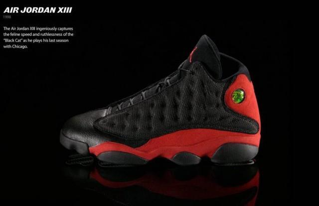 5. 第三位:Air Jordan XIII Air Jordan XIII 拥有流线型的鞋身,犹如猎豹脚掌般的鞋底,鞋帮处利用全息成像技术制成的“豹眼”,它将猫科动物灵动且极富攻击性的特点表现得惟妙惟肖。这双霸气的猎豹战靴诞生于1997年,成就了乔丹第二个三连冠霸业。