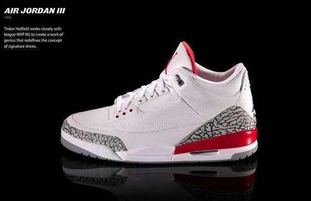 6. 第二位:Air Jordan III 被称为史上最精彩扣篮大赛,1988年扣篮大赛在芝加哥举行,前三届扣篮王“人类电影精华”威尔金斯、“小土豆”韦伯以及“飞人”乔丹都悉数登场。最终,乔丹以一记经典的罚球线起跳扣篮,成功卫冕扣篮王,并在第二天揽下全明星正赛MVP。出尽风头的乔丹用强劲震撼的表现,开启了Air Jordan III 的成名之路。此外,鲜为人知的是,这双第三代球鞋首次引入经典的“飞人”标志,同时是乔丹本人最钟爱的一双。
