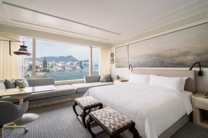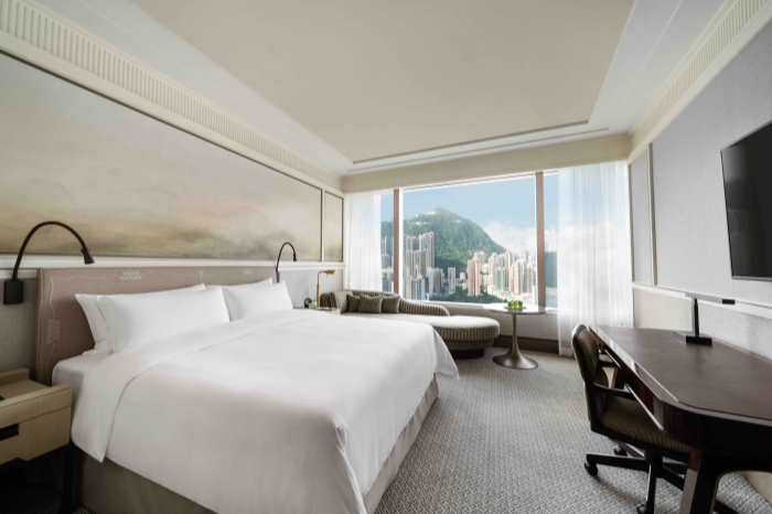 港岛香格里拉焕新升级的房间由知名设计师Tristan Auer打造,以低调奢华的风格为设计基调,融入亚洲美学与现代化设施。Auer以香港的建筑特色与文化为灵感,运用“以窗成框,以框定景”的理念,将窗外景致融入客房之中。此次焕新设计为港岛香格里拉增添了一个新视角——看得见风景的房间。坐拥太平山山景和维多利亚港海景,凭窗眺望即是风景。整体设计风格中保留了当代东方韵味,又融入了精致法式浪漫。