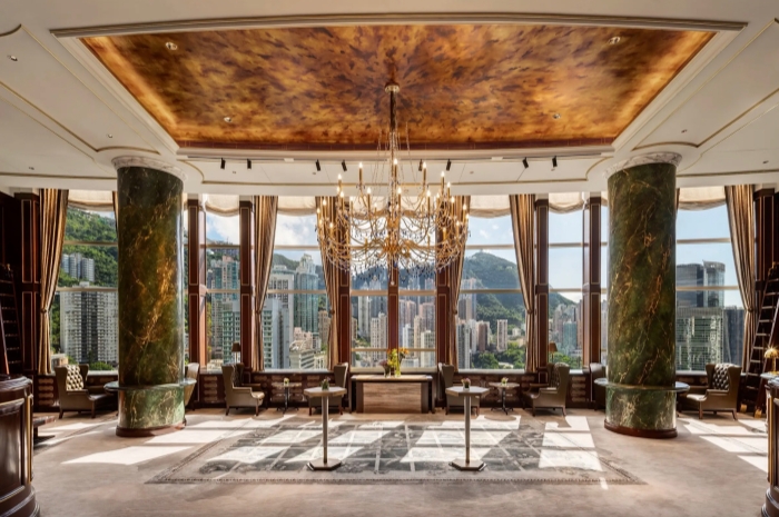 位于港岛香格里拉39-40层的图书馆,是香港唯一拥有古典图书馆美感的酒店酒廊。这次焕新设计保留了可俯瞰香港自然景色的宽大落地窗,重新设计了图案精美的窗帘和色彩鲜艳的家具。金色天花板下的古董吊灯和灯具营造出温暖、私密的氛围,窗户两侧的复古书架上陈列着精选的工艺品、绘画和书籍。这个融合了古典和当代美学的空间,可以作为庆祝人生重要时刻和举办梦幻婚礼的选择。