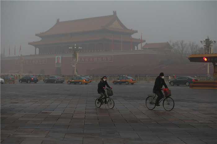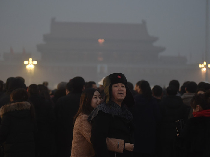 7. 2016年12月20日,北京,雾霾严重,天安门游客带口罩游兴不减。