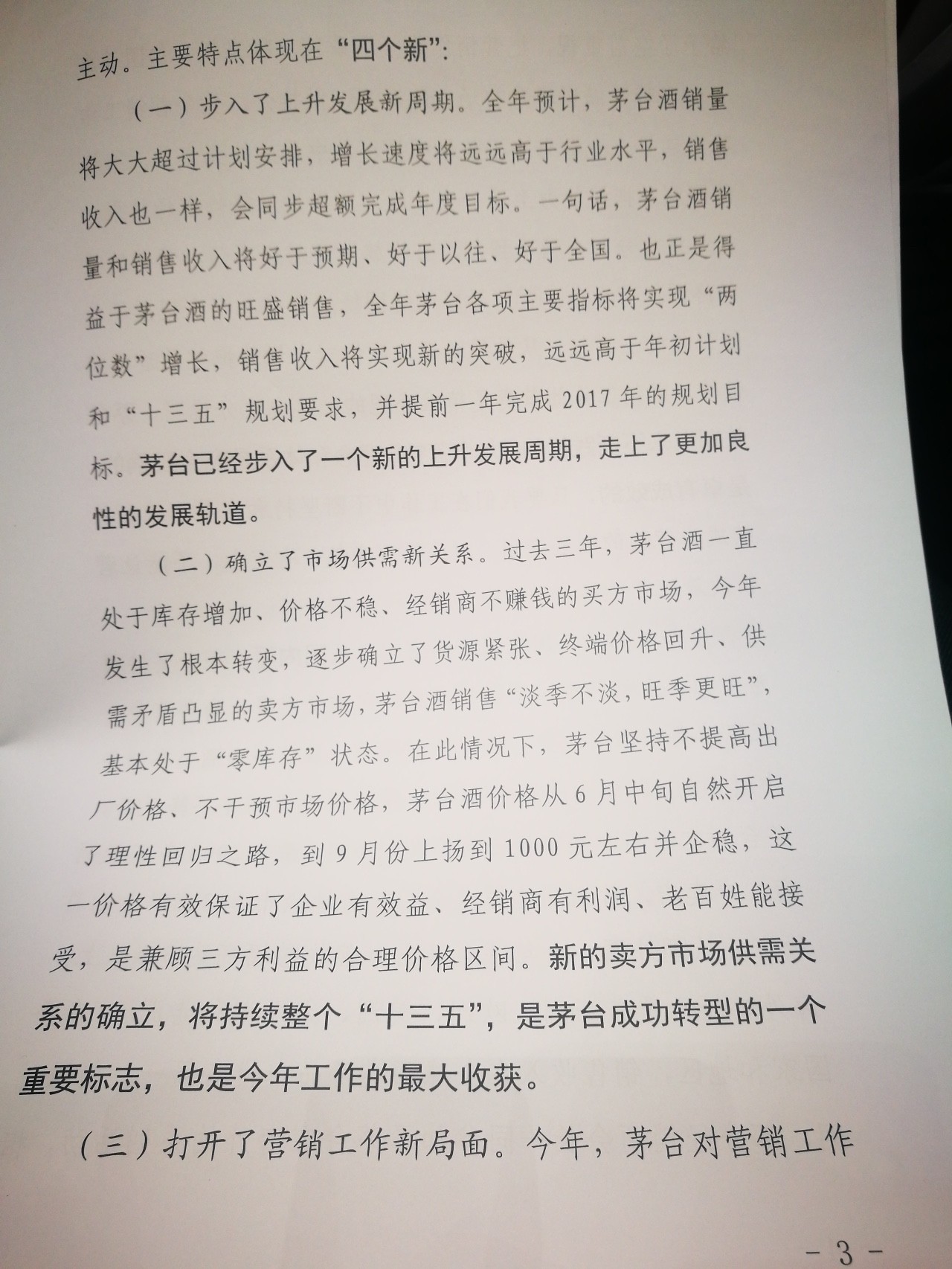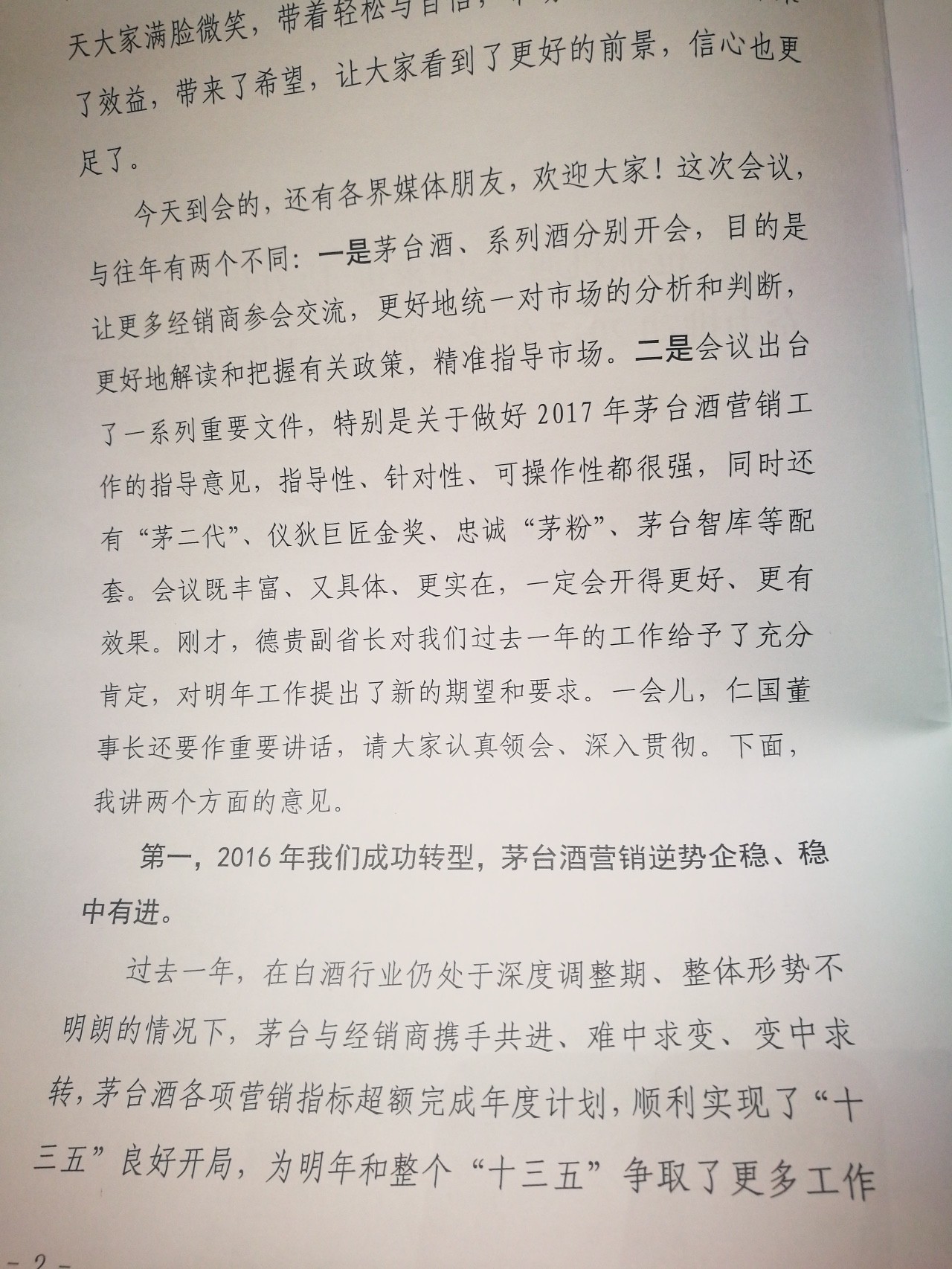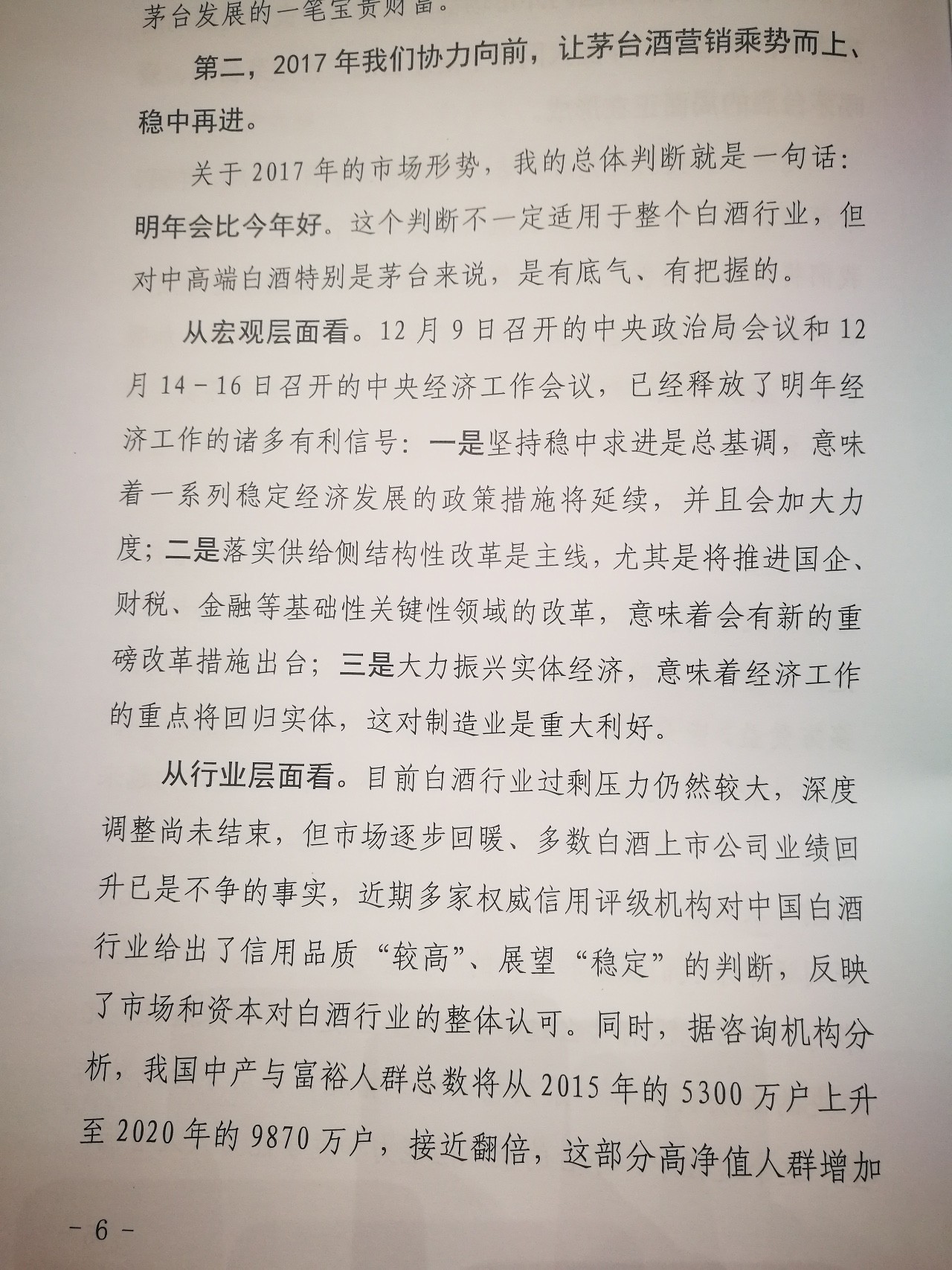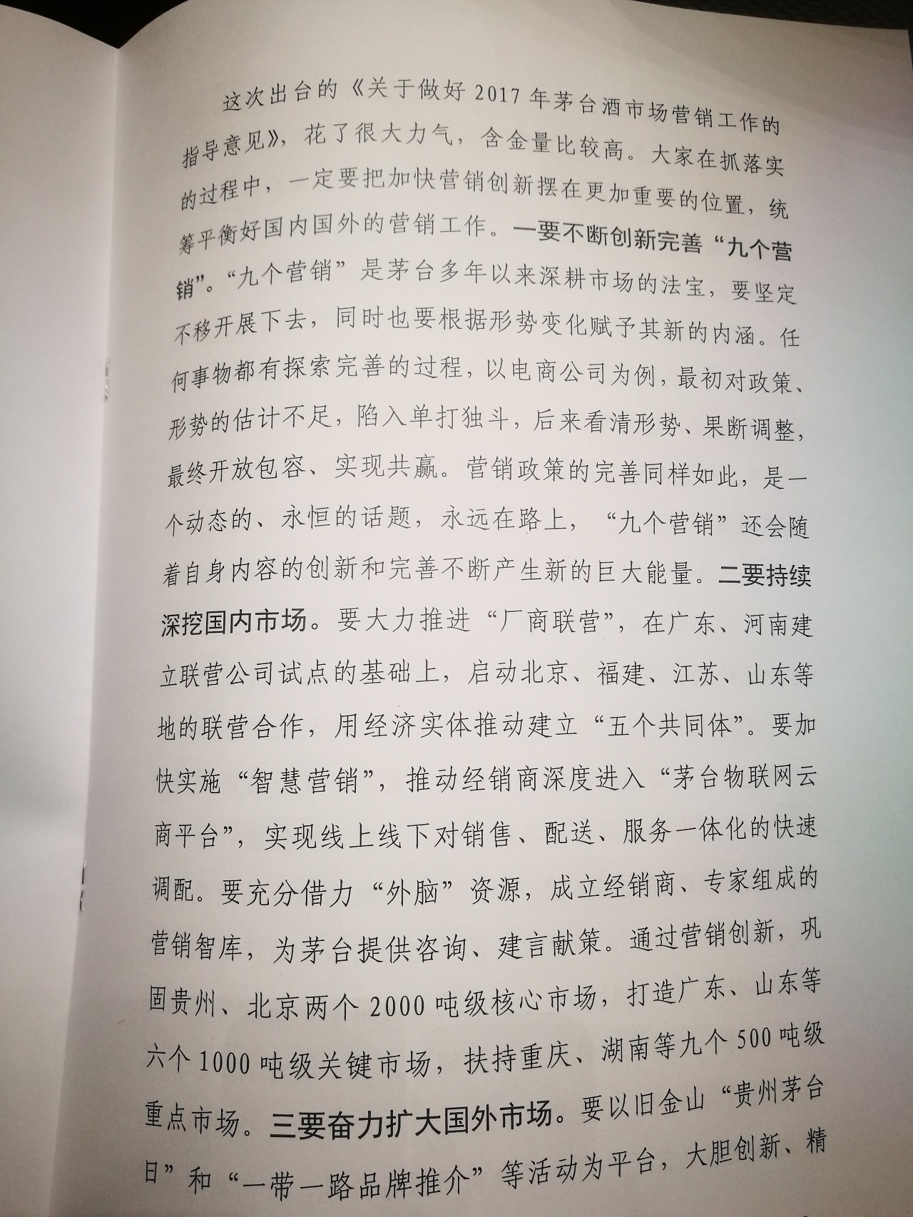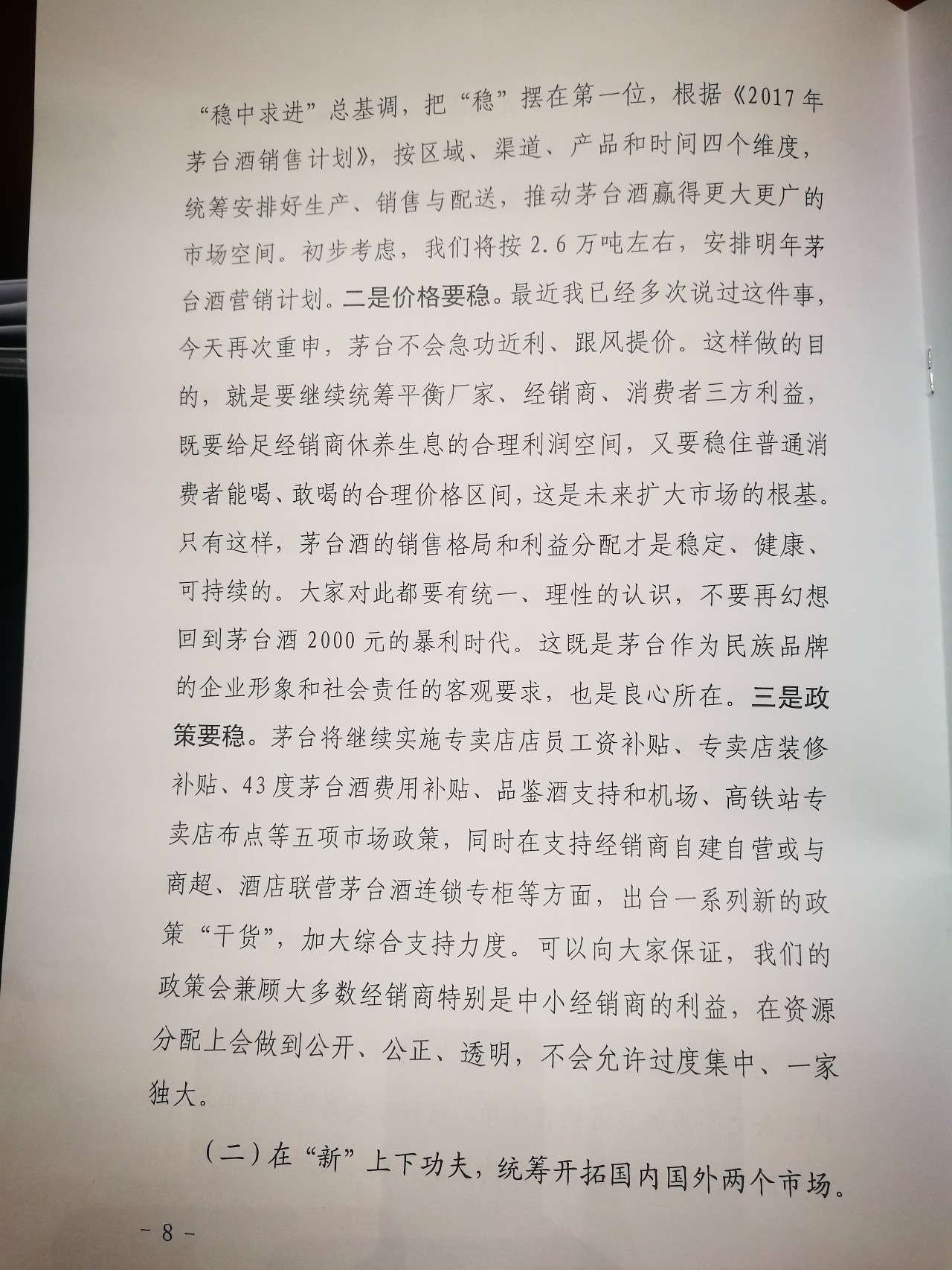 本次经销商大会期间,贵州茅台股份公司下发2017年茅台酒市场营销工作意见的文件,酒业家整理如下。