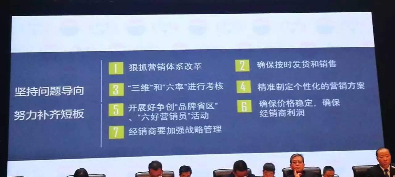 茅台集团董事长袁仁国在其后的发言时表示,当下营销工作有一些不足之处:9个营销落实有差距,国内国际市场不平衡,线上线下不平衡,价格浮动不稳,市场基础不牢,服务水平不高。