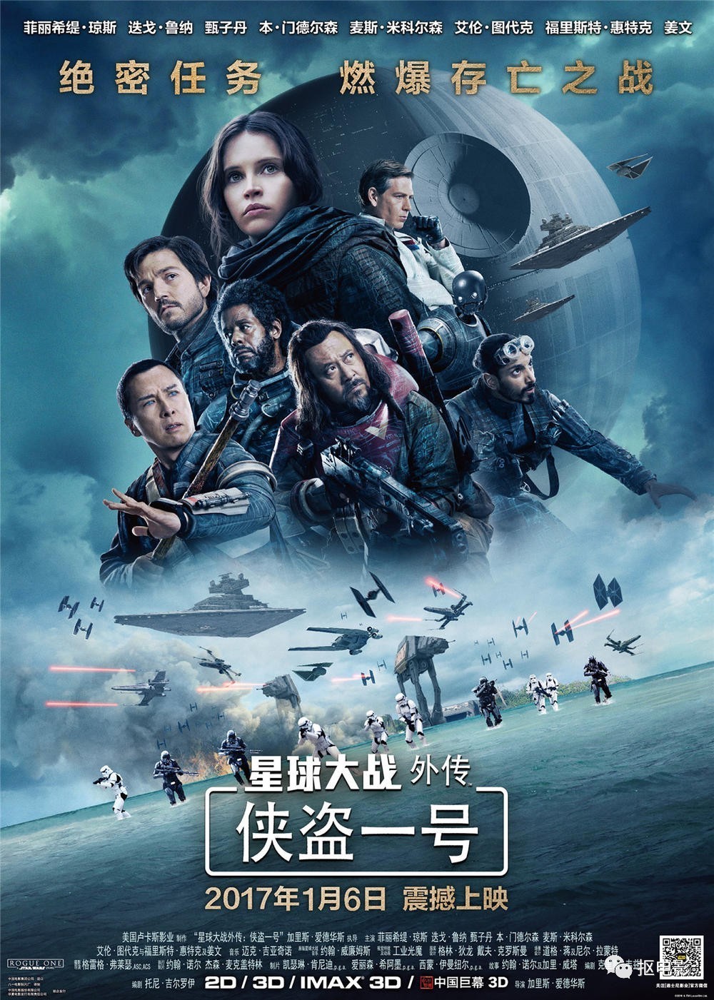 《星球大战外传:侠盗一号》,星战系列的第一部外传电影,星战那是神马地位,欧美的西游记啊!