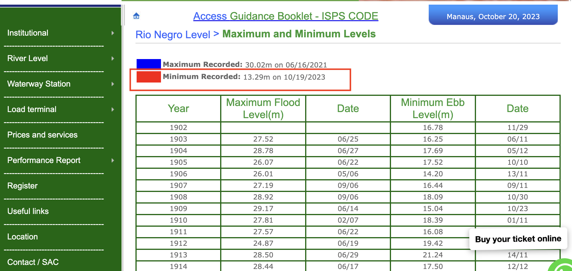 据亚马孙州首府马瑙斯(Manaus)港口官网数据,截至当地时间10月19日,该港水位已降至13.29米的百余年新低,为1902年有记录以来的最低值。另据巴西政府灾难警报中心Cemaden的数据,今年7月-9月,亚马孙部分地区降雨量为1980年以来最低。马瑙斯整个8月只下了一天雨。
