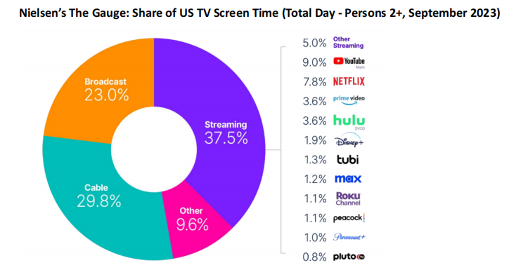 今年9月份Netflix在美国电视屏幕时间所占的份额为8%,高于除YouTube之外的任何流媒体。