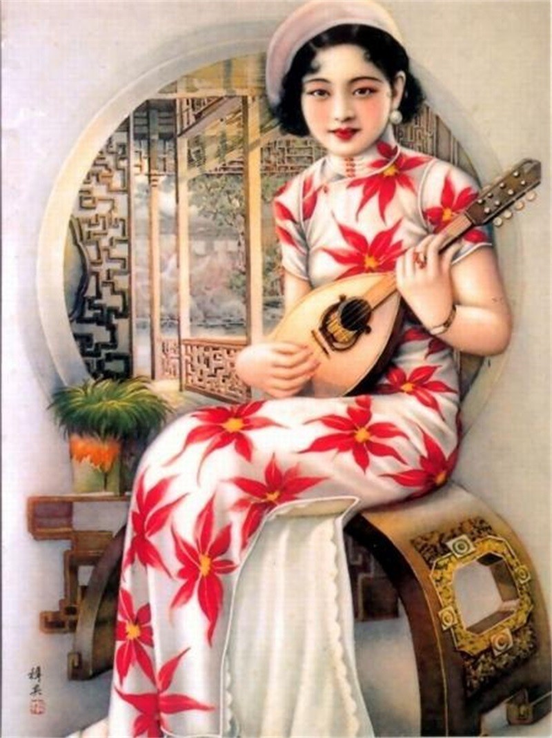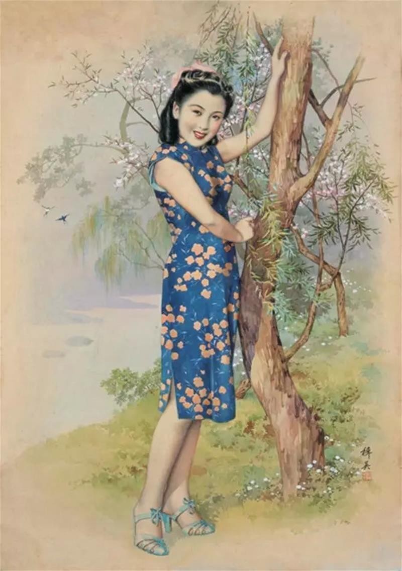 他画的月份牌美女,旗袍开衩的高低,领口的宽窄,露多少胳膊,露多少颈,是方格还是碎花,是藤蔓还是团花等,件件旗袍从式样到花布图案,新颖时髦,都成了时尚流行的风向标。
