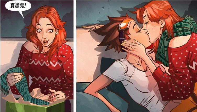 漫画虽然很短,但是却给玩家们带来了众多惊喜,尤其是娇小性感的猎空居然是一名同性恋。不过,玩家们早已将猎空和黑百合列为最佳CP,性取向并没有让玩家们太过惊讶。然而,“猎百合”的支持者们这次却要大失所望了,漫画中猎空的CP是一位名为“艾蜜莉”的陌生女性。