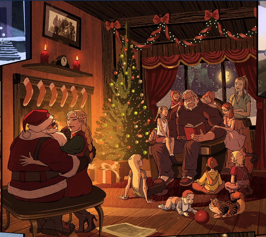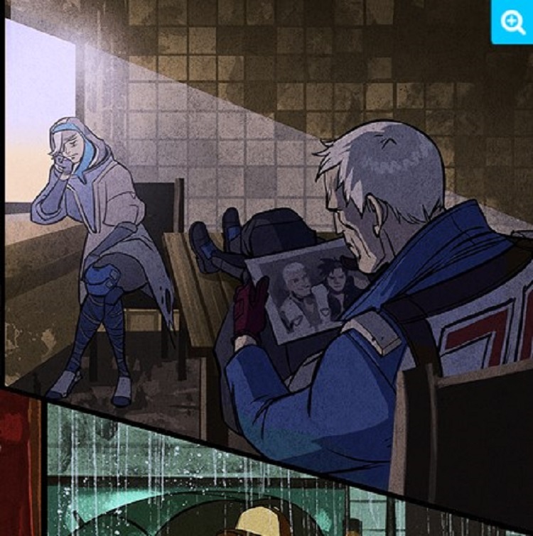 除此之外,漫画给玩家们留下了一个巨大的悬念。同样苍老的士兵76和安娜相聚在一起度过了圣诞节,那士兵76究竟是不是法老之鹰的父亲呢?