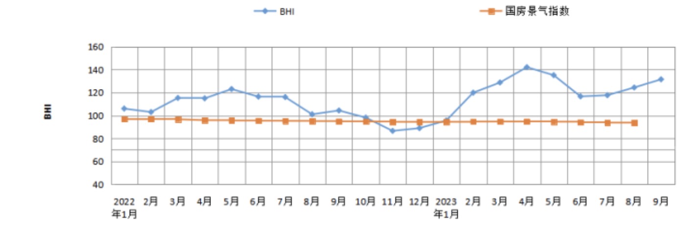 据商务部流通业发展司和中国建筑材料流通协会统计数据显示,全国建材家居景气指数(BHI)自2021年10月起整体呈现下降趋势,进入2023年后整体呈现上涨趋势,今年9月BHI 指数为131.55,环比上涨7.11点,同比上涨了27.21点。