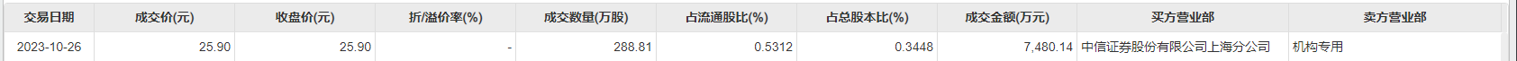 10月26日,天华新能今日大宗交易成交288.81万股,成交额7480.14万元,占当日总成交额的14.59%,成交价25.9元,较市场收盘价持平。